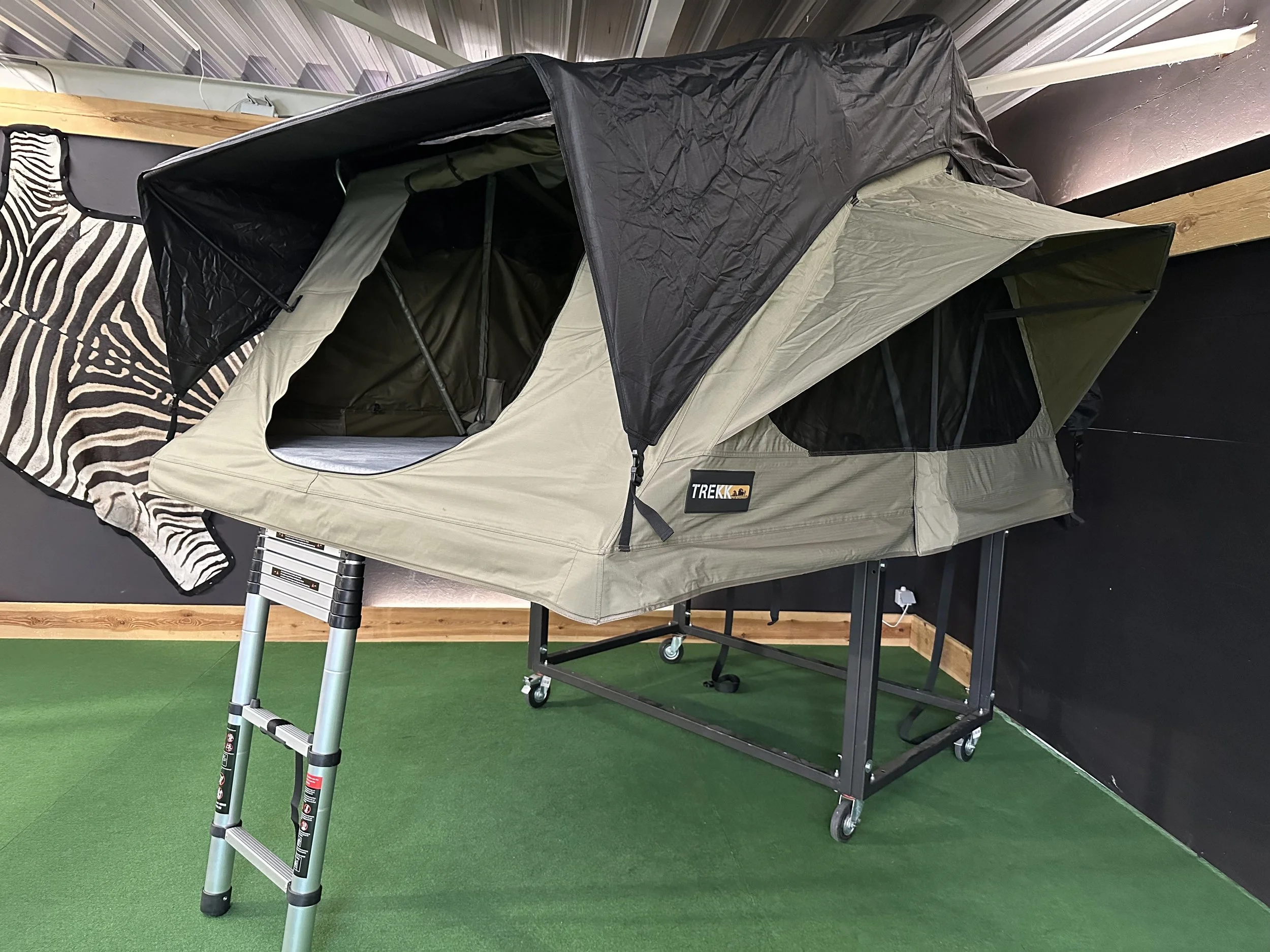 De TREKK Sunrise is een innovatieve daktent voor 4 personen, ontworpen voor avonturiers die comfort en kwaliteit zoeken. Met zijn automatische openingssysteem en stevige constructie is deze tent klaar voor elk seizoen – of je nu een weekendje weg gaat of een lange roadtrip plant.